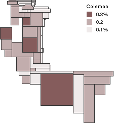 This deceptive scale shows Gary Coleman apparently taking over Solano, San Francisco, Alameda, and Los Angeles counties.