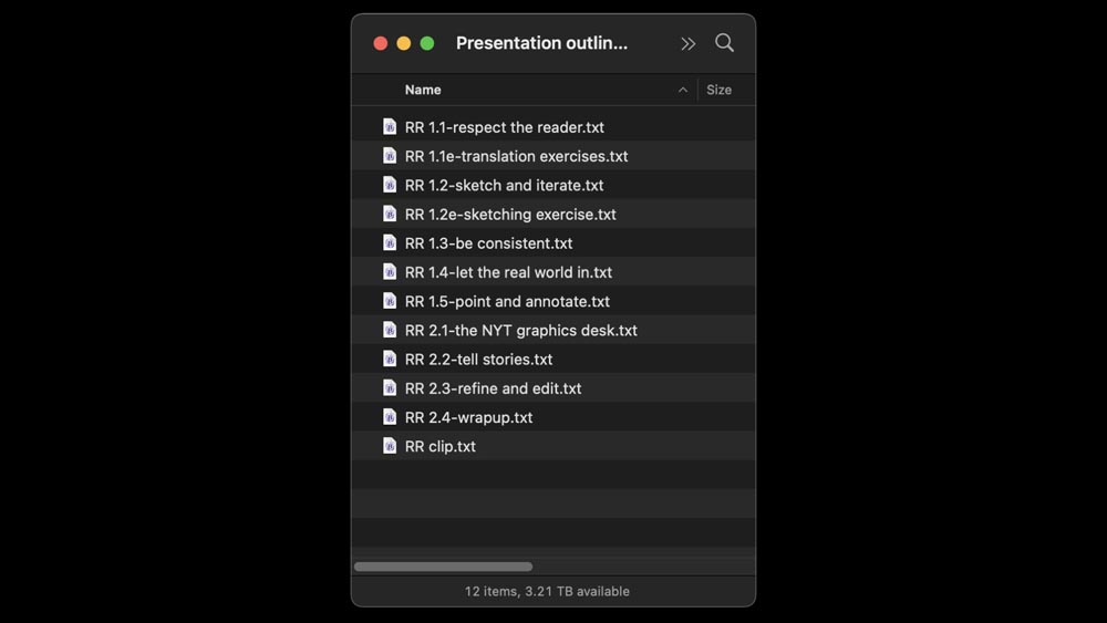 My audience is never going to see the contents of these notes, the rough outlines that I put in these text files, that’s purely for me.