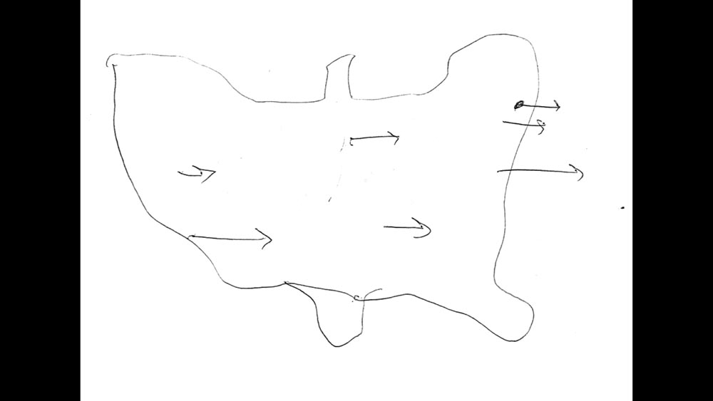 I’m trying to have a posture so that — there’s kind of ramp of people you’re looking at, extending up toward the back — so that I’m open to this large audience. I can look in all directions and I’m not collapsed and looking down.