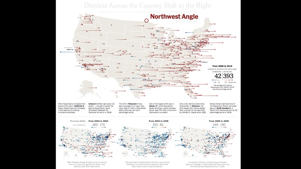 So one way to wrap up this little mini section of the talk is to point out the Northwest Angle at real size, at scale.