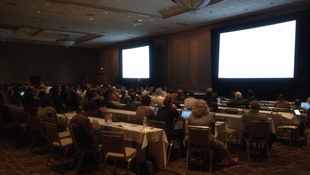 And about halfway down the page, there was this fantastic image of this talk, right? And this is just such a great setup. We look at the size of the screen, right. He’s got no obstructions, no podiums. He’s a got free room to walk, at least this area. He’s got just the mic. The room could probably be a little darker so you could see this.