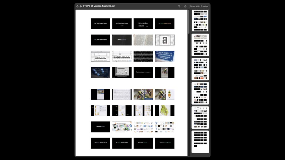 So I went back and I thought: OK, well, if the title of the event is “See, Think, Design, Produce,” then I’ll just steal that as the title of my talk. Right? There’s no reason to invent something else.