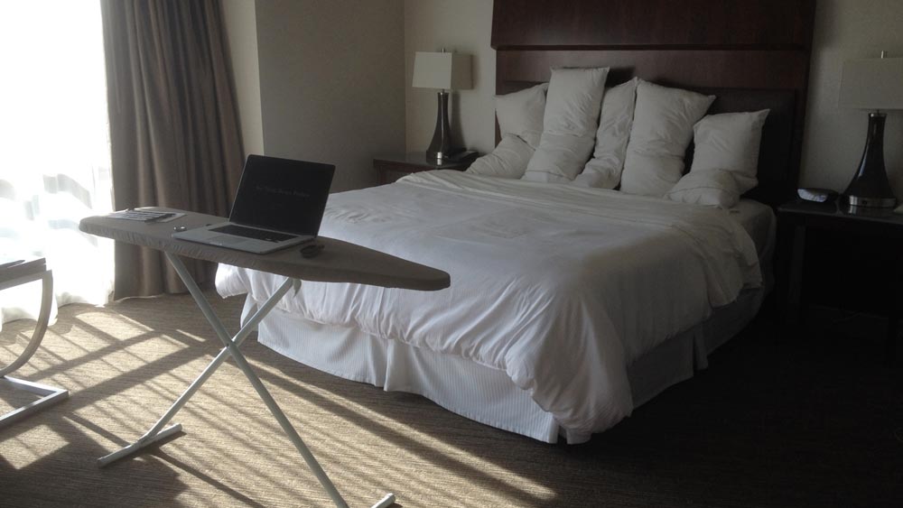 And sometimes you’re kind of stuck. This was another stage where there wasn’t much runway. I felt like I was kind of trapped in this little space between table and podium. But even then, just get out from behind the podium. Many speakers were stuck behind that podium, reading from text, looking down and just not interacting with the audience in any way. So, do what you can.