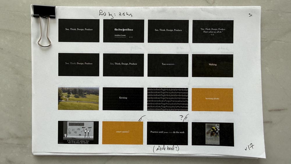 So by the time I run through the four sections in ”See, Think, Design, Produce,” people have been listening to me for an hour.